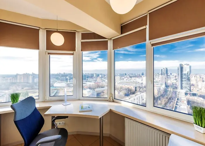 Зупинившись в апартаментах Укриття у будинку, Центр, 20 поверх! 2к квартира із панорамою Київ, гості можуть дістатися до майдану Незалежності, що знаходиться на відстані 5 хвилин їзди.